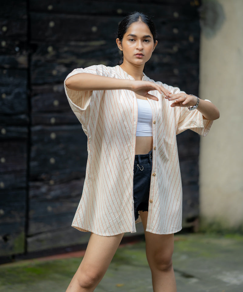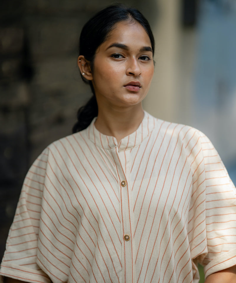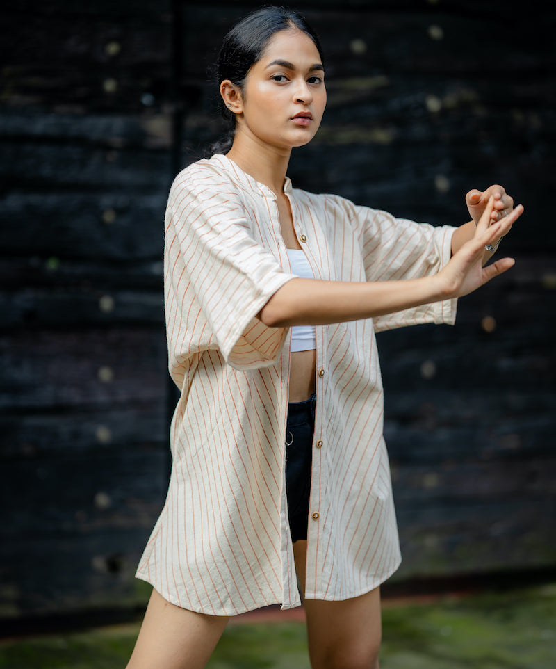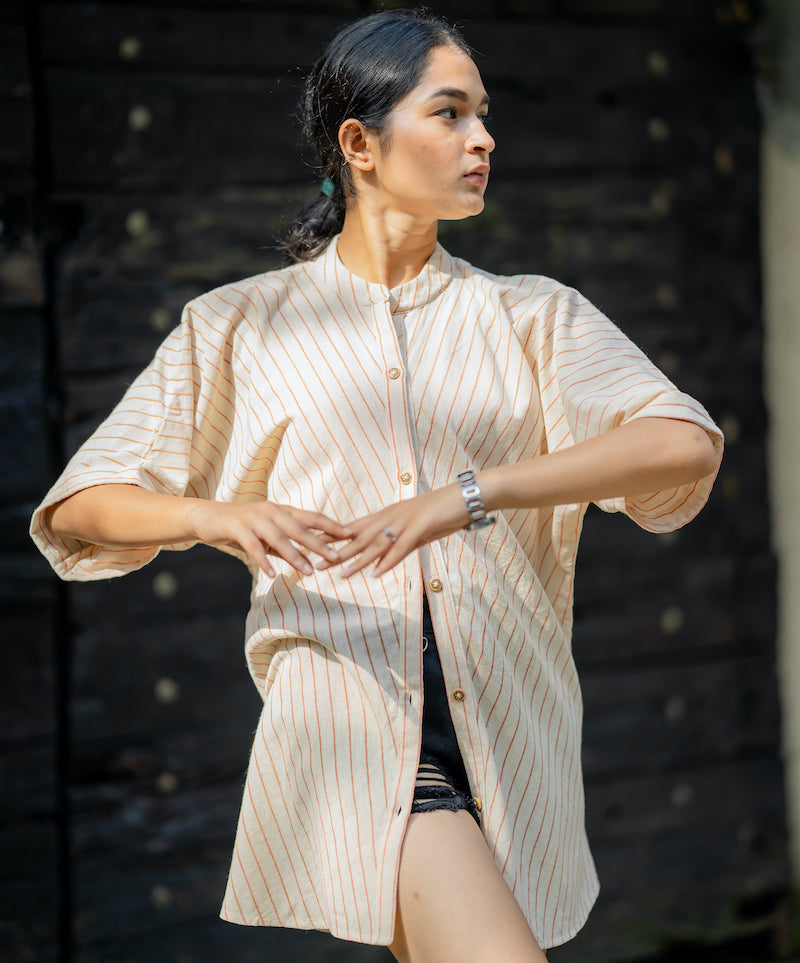 We offer sustainable clothing. They are either naturally dyed, handwoven or handspun garments. The unconventional variation on the fabric are a novel way of expressing our style of fabric and not a defect as such.