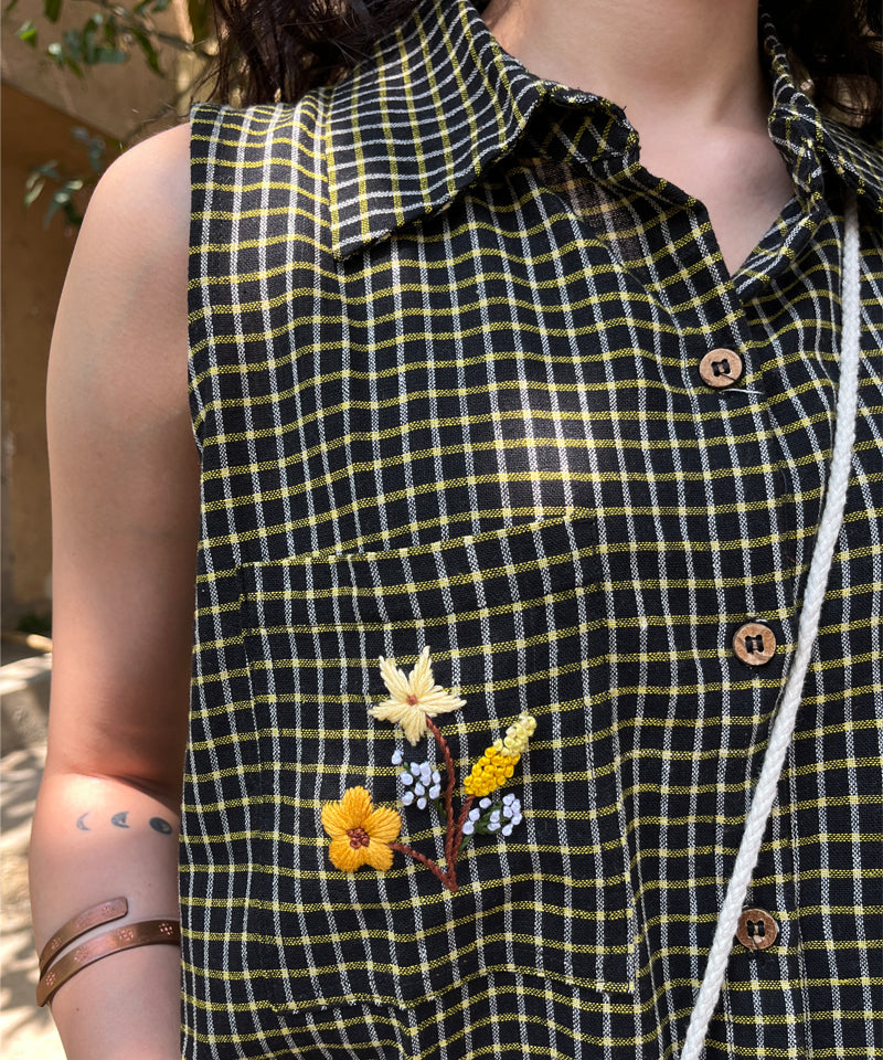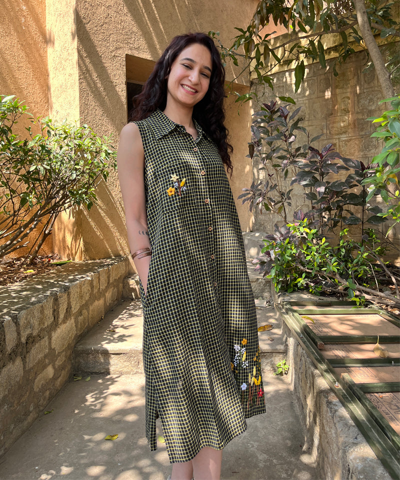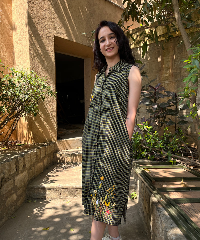 Discover our beautiful handloom dress. Made with natural dyes for a soft, earthy color, it features delicate hand embroidery that adds a unique, personal touch. This dress blends traditional craftsmanship with a modern, stylish look, perfect for both everyday wear and special occasions.