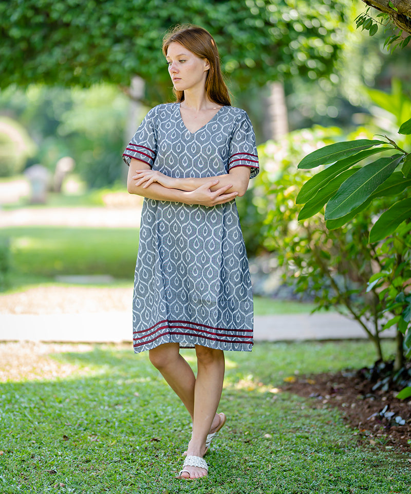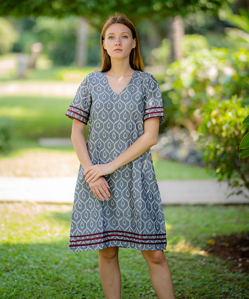 We offer sustainable clothing. They are either naturally dyed, handwoven or handspun garments. The unconventional variation on the fabric are a novel way of expressing our style of fabric and not a defect as such.