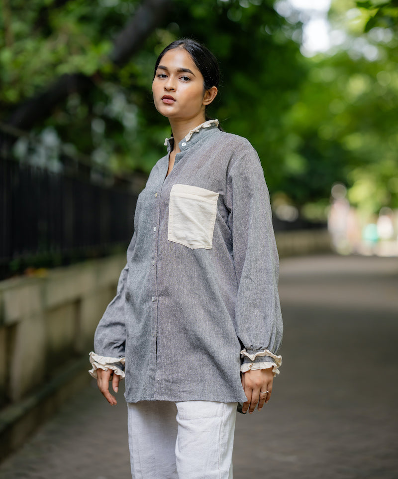 We offer sustainable clothing. They are either naturally dyed, handwoven or handspun garments. The unconventional variation on the fabric are a novel way of expressing our style of fabric and not a defect as such.