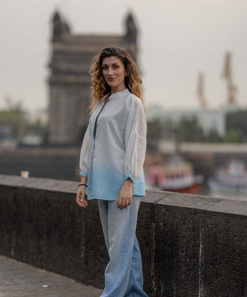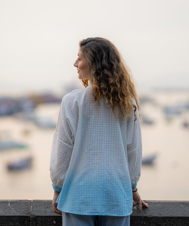 Discover the epitome of relaxed elegance with our Lagoon shirt, where classic white meets a tranquil sky blue.