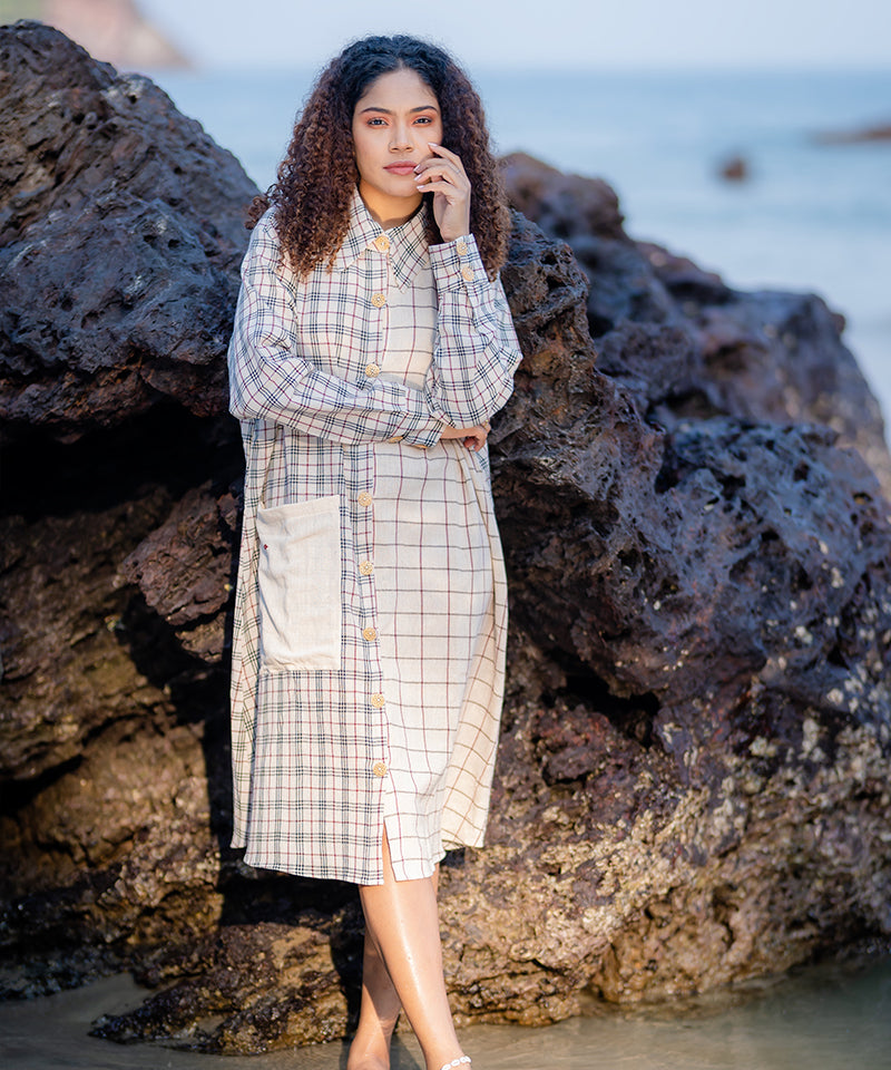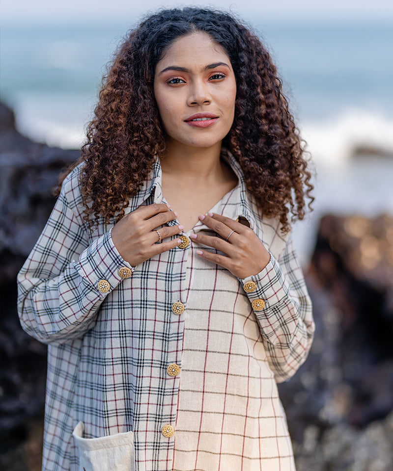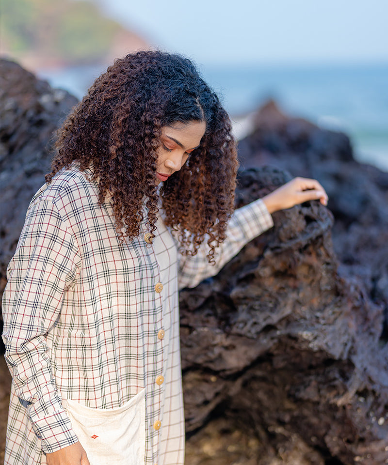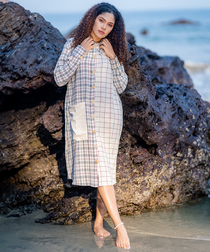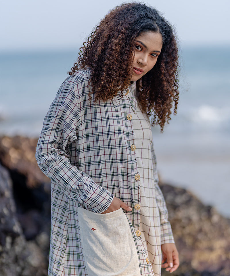 We offer sustainable clothing. They are either naturally dyed, handwoven or handspun garments. The unconventional variation on the fabric are a novel way of expressing our style of fabric and not a defect as such.