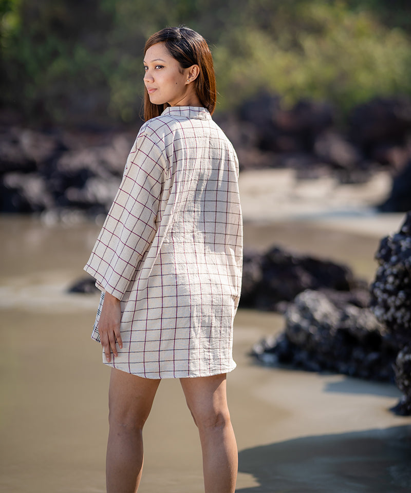 We offer sustainable clothing. They are either naturally dyed, handwoven or handspun garments. The unconventional variation on the fabric are a novel way of expressing our style of fabric and not a defect as such.