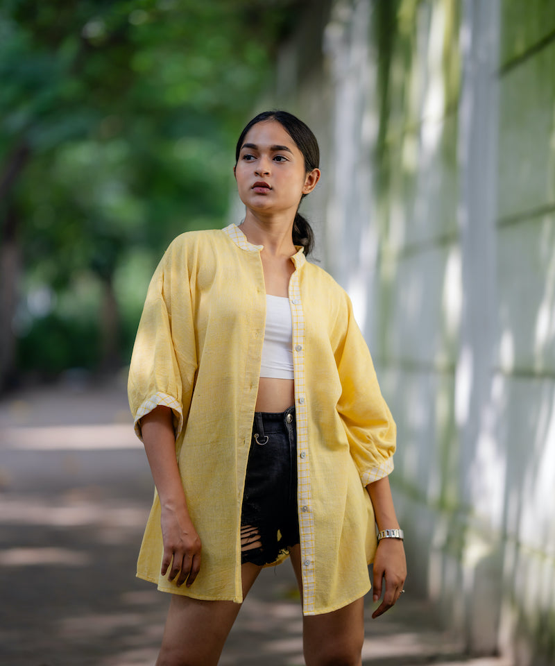 We offer sustainable clothing. They are either naturally dyed, handwoven or handspun garments. The unconventional variation on the fabric are a novel way of expressing our style of fabric and not a defect as such.