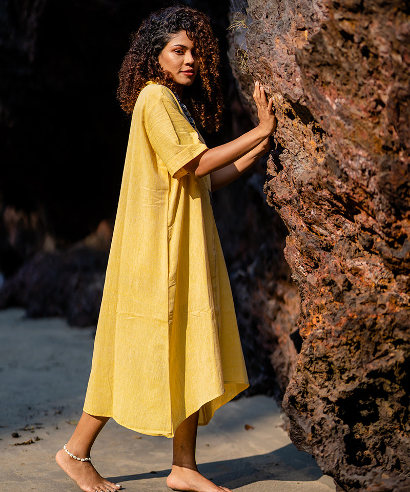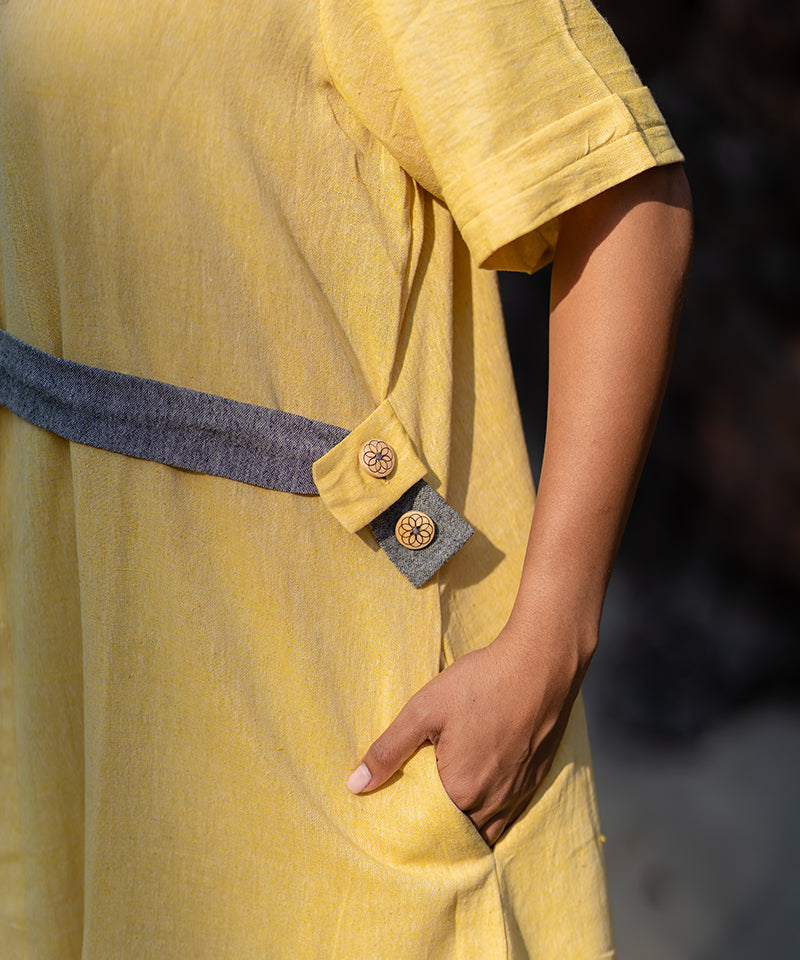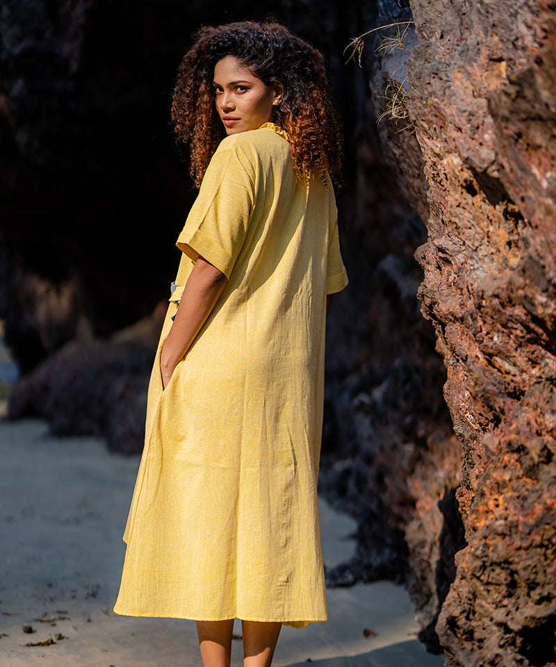 We offer sustainable clothing. They are either naturally dyed, handwoven or handspun garments. The unconventional variation on the fabric are a novel way of expressing our style of fabric and not a defect as such.