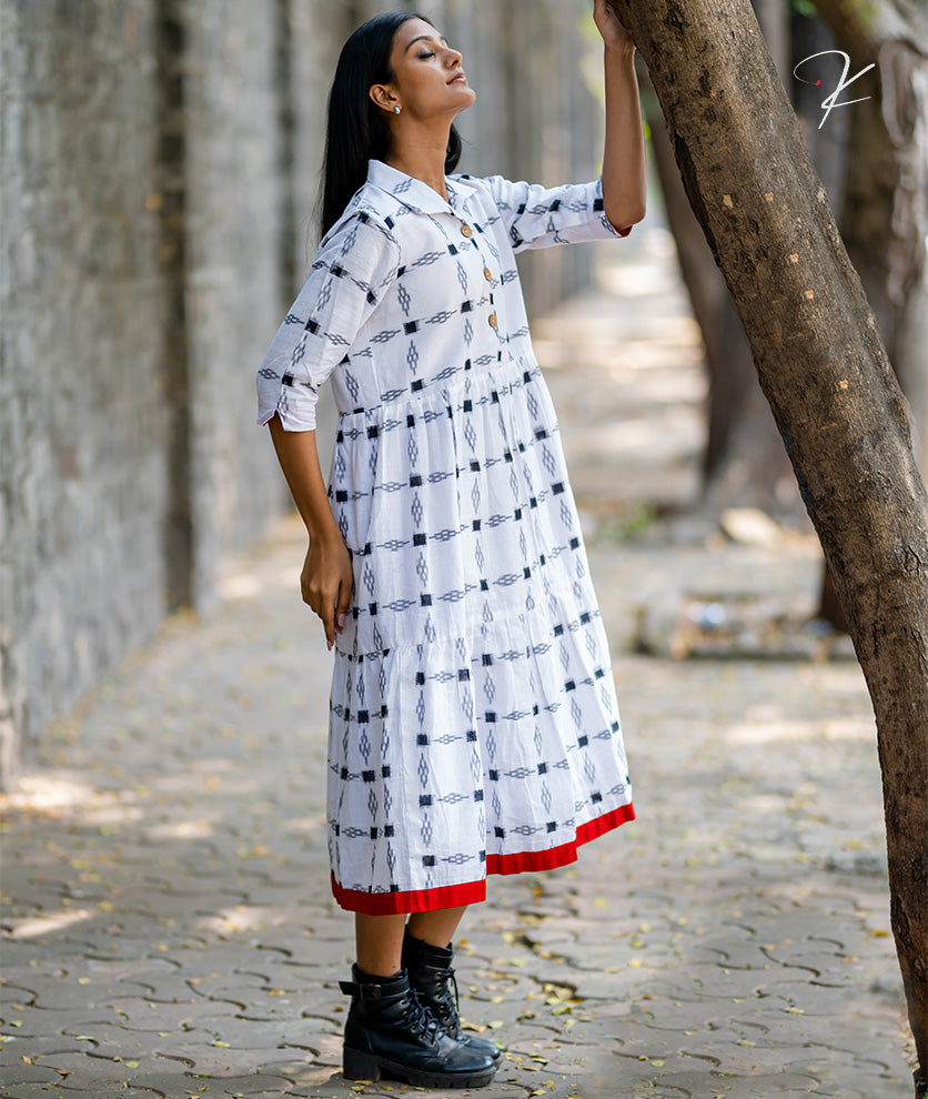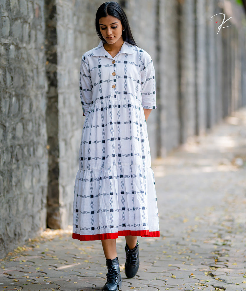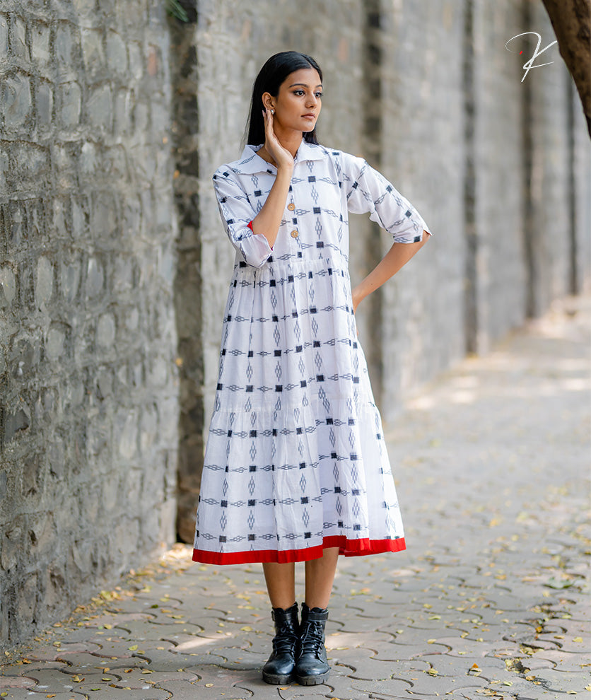 Hand constructed from the Premium Ikat of Odisha with a contrast hem.