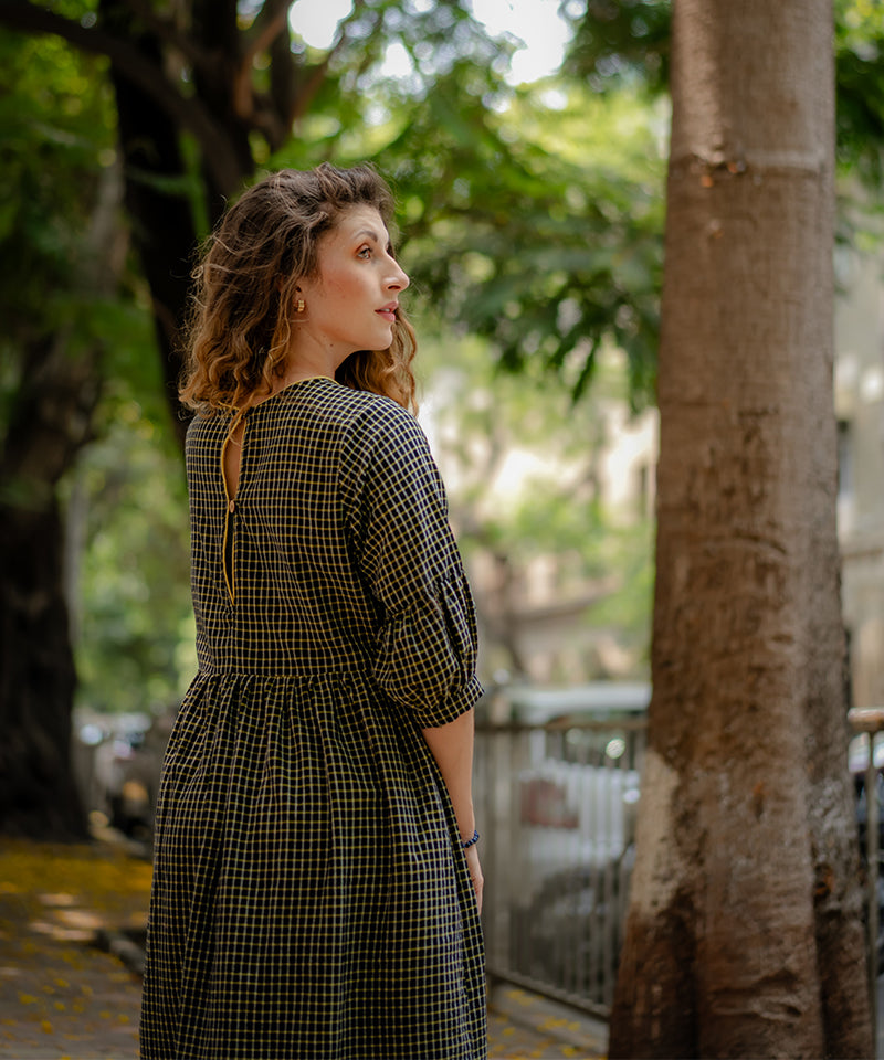 Crafted from the finest handloom fabric, this dress is a blend of classic style and artisanal quality.